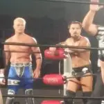 Out comes Cody, Marty Scurll, and Hangman page to join The Young Bucks in the ring. The say they are going to film a segment for the upcoming episode of Being The Elite. I honestly can’t remember what was said between Cody and the Bucks, it didn’t really resolve anything regarding Cody and Kenny I don’t think.. Bucks leave the ring, but Cody, Marty and Hangman stay.
