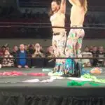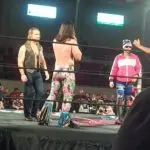 Jackson locks in a running bulldog on one of The Best Friends, all while clotheslining the other member. I lost track of who was legal and who was on the receiving end of what. Bucks going for a double team move now. Looks like a powerbomb/superkick combo or maybe the Meltzer Driver I couldn’t tell, I was busy being rowdy and heckling and cheering and being that guy in the crowd at this point. But it doesn’t matter because I’ll never know since Matt’s back gave out, selling the injury that they worked over earlier in the match.