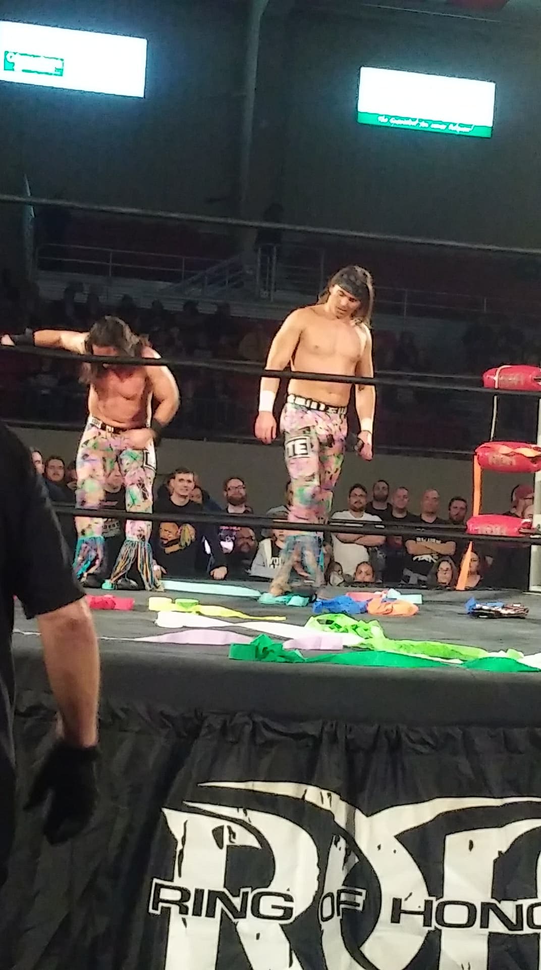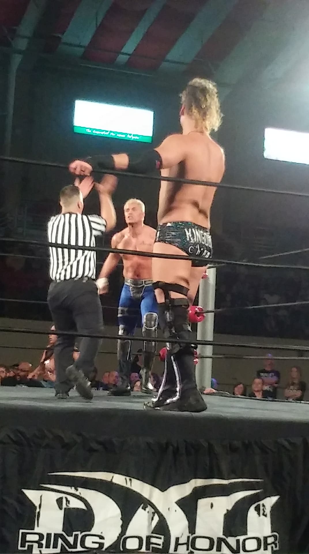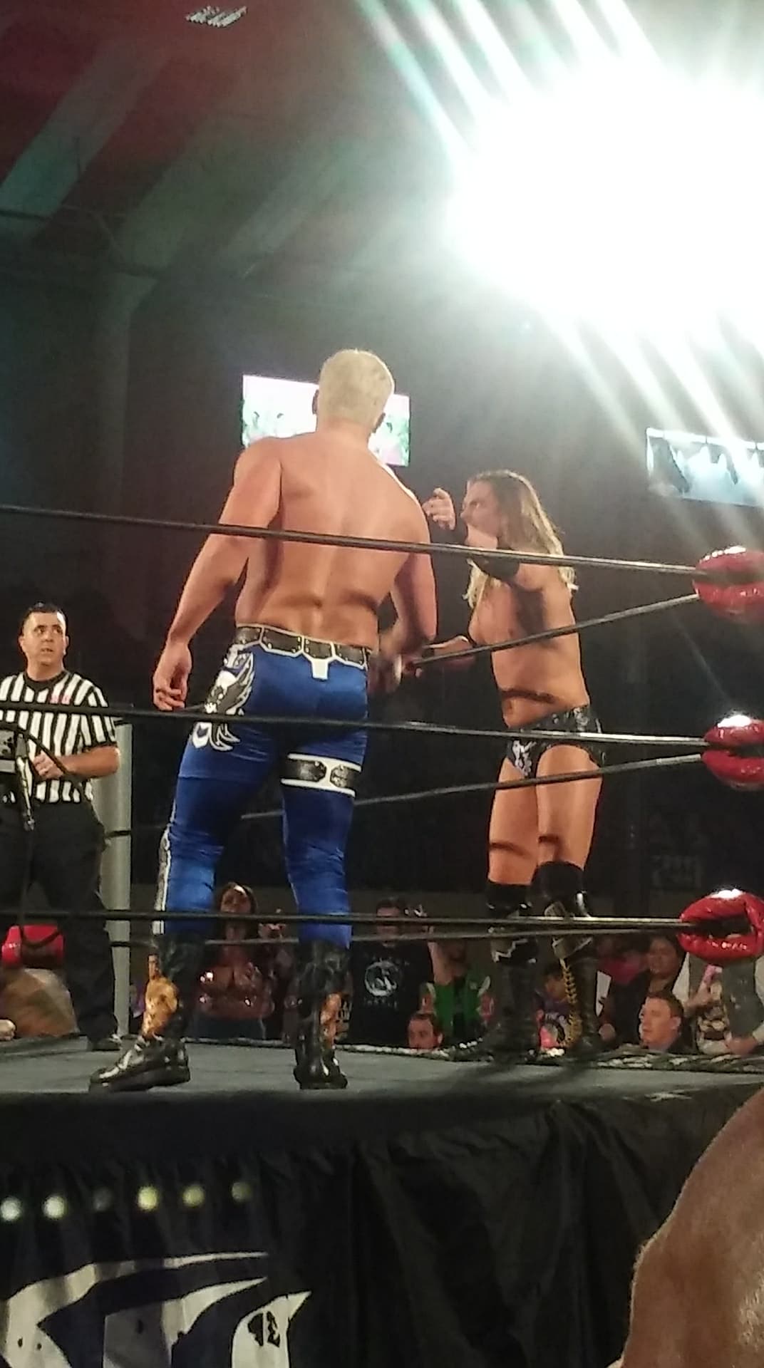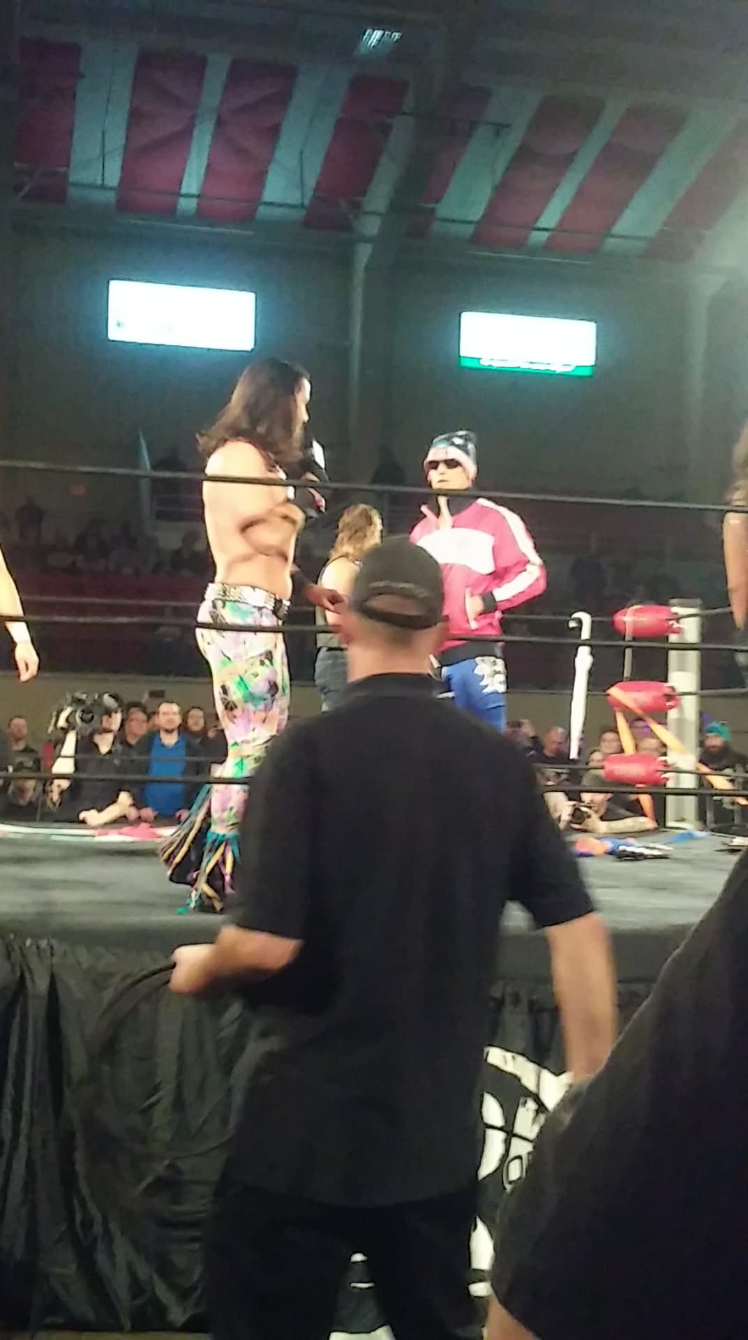Crowd loved this match. Super hot. Huge reaction for the finish. They have a face off in the ring after the match. Guy beside me gets a “Both These Guys” chant going. Eventually they shake hands in the ring. Crowd loves it.
