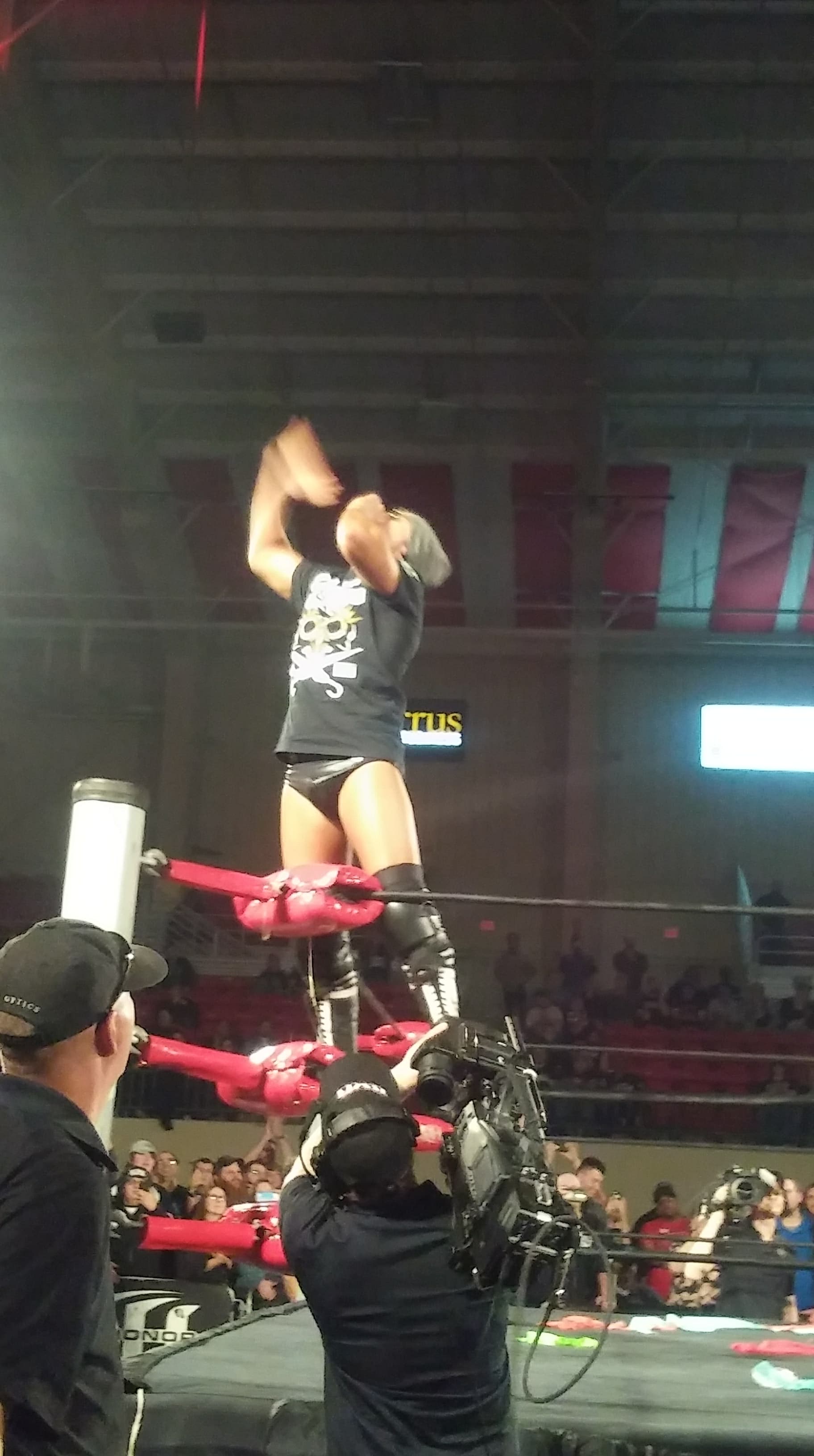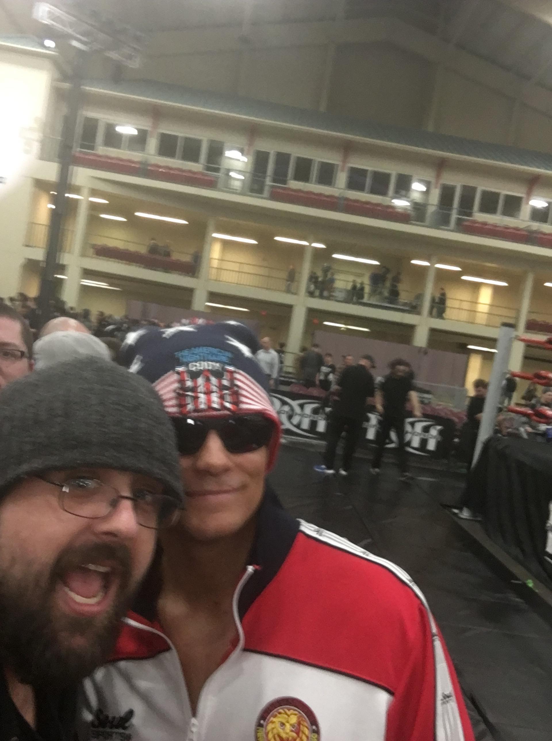 Cody exits the ring and takes selfies with us at ringside.