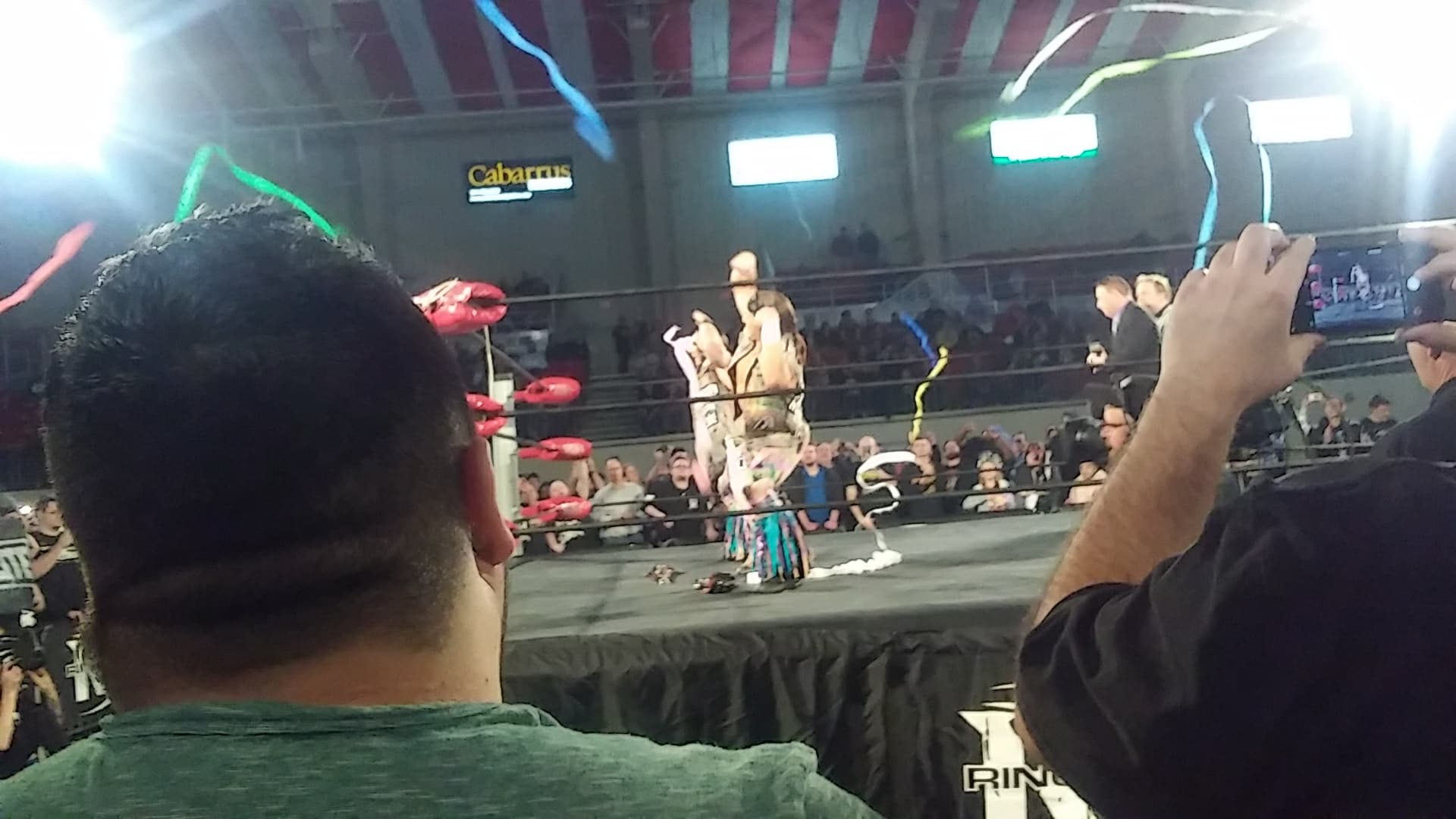 Hangman gets on the mic and puts over the NC fans, the state, the crowd.