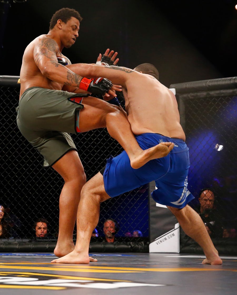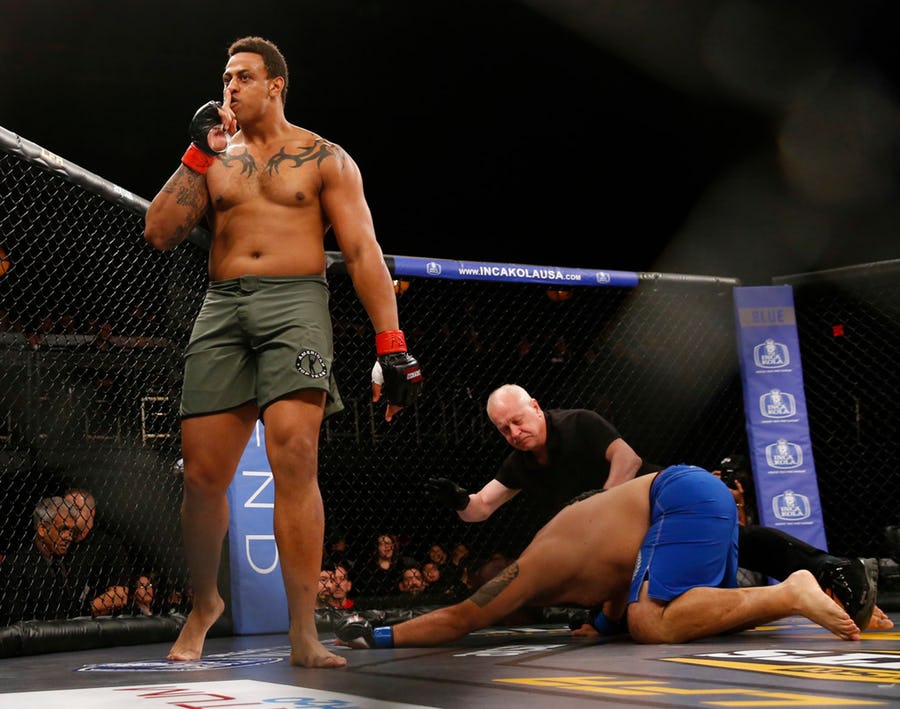 Ex Dallas Cowboy and Carolina Panther Greg Hardy won his third straight amateur MMA fight in 14.53 seconds Friday night at a Legacy Fighting Alliance event.
