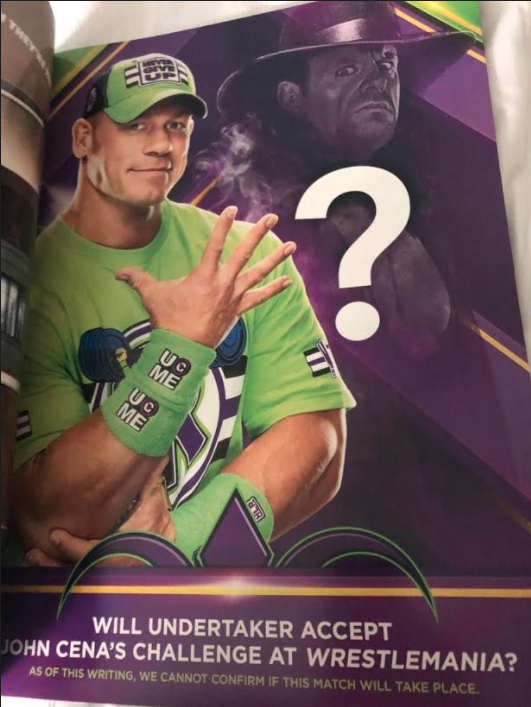 A reader sent along a promotional poster that is being advertised locally in the New Orleans area that features The Undertaker & John Cena, indicating that the match will take place. This is despite a recent report from Mike Johnson of PWInsider which claims that The Undertaker will only appear in a segment of some sort and that he is not scheduled to wrestle.