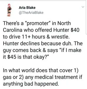 Wrestling Twitter is known to have debates from time to time again. Recently independent wrestler Aria Blake seems to have stoked the flames to a new debate. Should wrestlers travel long distances for little to no pay?