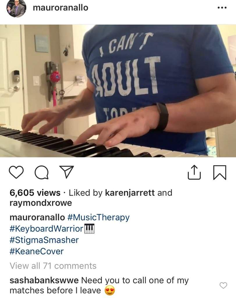 WWE NXT Commentator Mauro Ranallo posted a video on his instagram account showing of his piano playing skills, which brought out a very unexpected and interesting comment from Sasha Banks. Sasha wrote: