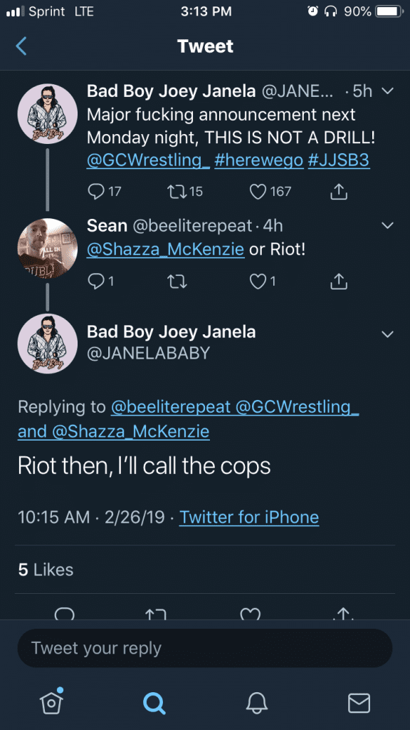 Shazza is at a do or die moment in her life and she is going balls to the wall. Which would make her a perfect fit for Joey Janela’s most outrageous match. The Clusterfuck. Shazza tweeted to Joey saying she wants in.
