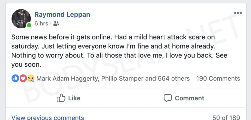 “Some news before it gets online. Had a mild heart attack scare on saturday. Just letting everyone know I’m fine and at home already. Nothing to worry about. To all those that love me, I love you back. See you soon.”