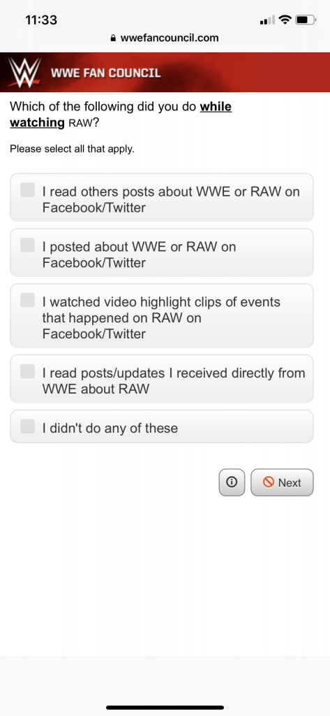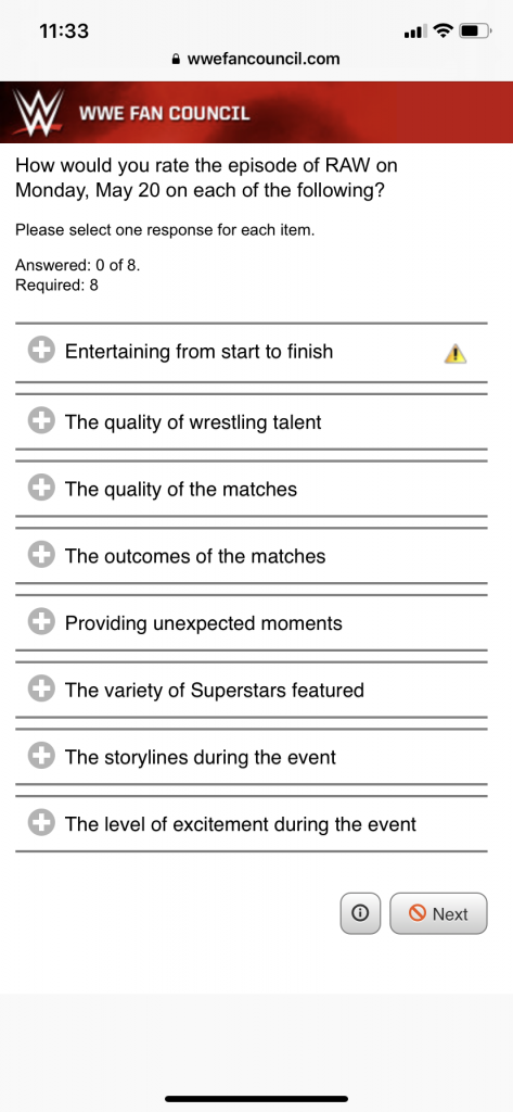 The WWE has a periodic survey that is called the Fan Council, typically they send out an email asking some questions about your thoughts on the current product.