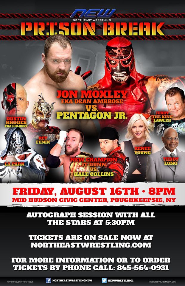 It was announced that Moxley will make his AEW in-ring debut at the company’s next event, but it was also announced earlier today that Moxley and another member of the AEW roster, Pentagon Jr. will face each other at a Northeast Wrestling Event in Poughkeepsie, NY on August 16th.