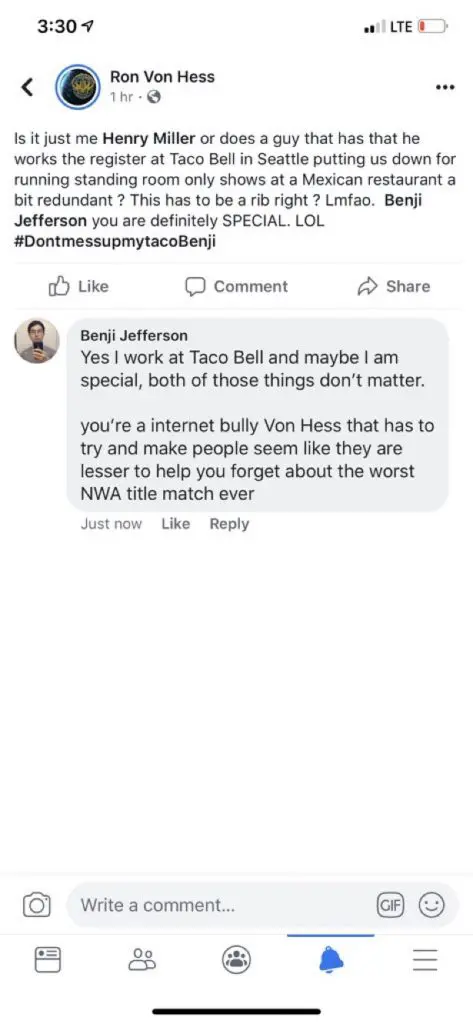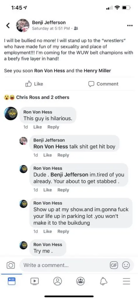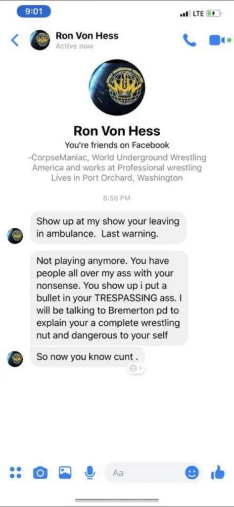 One such promotion is World Underground Wrestling American, which is from Washington state. WUWA is promoted by Ron Van Hess. Ron took to Facebook recently to snipe at a fan who said he would not attend another WUWA show due to the experience the fan had with the promoter on Facebook live.
