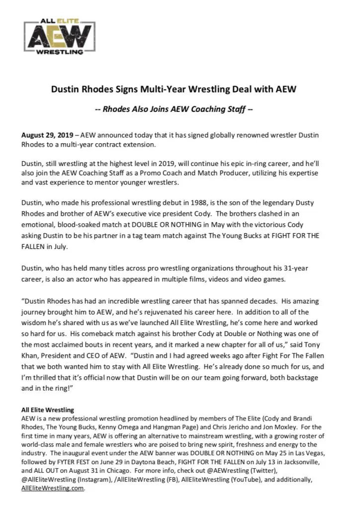 All Elite Wrestling sent out a press release today saying that Dustin Rhodes has signed a multi-year extension deal with the company.