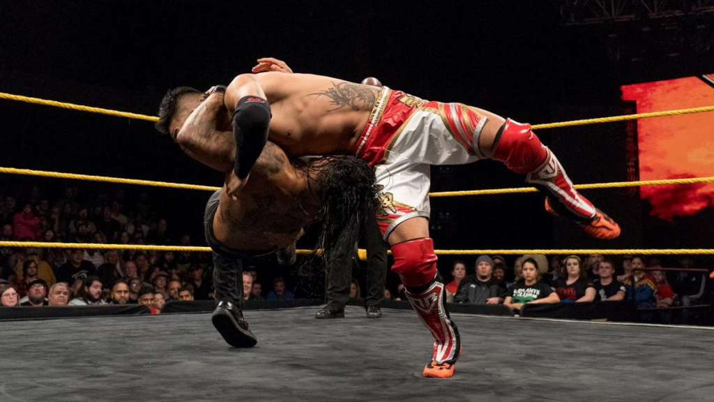 Last week on NXT: Breezango are a fully formed team again. They have new gear and really generic new music. Candice LeRae got beatdown in a parking lot by Io Shirai. Velveteen Dream made quick work of Kona Reeves before having his couch set on fire by Roderick Strong. Bianca Belair fucked around and beat Taynara. Jordan Myles cashed in his Breakout Tournament contract but could not dethrone NXT Champion Adam Cole.