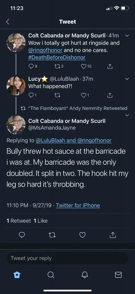 It appears neither Bully Ray or ROH has contacted the fan who was injured. Even though Bully has been involved with fans before. Most recently taking a fan backstage and telling them to “just be a fan” after the fan said some derogatory things to Bully’s girlfriend Velvet Sky during her entrance.