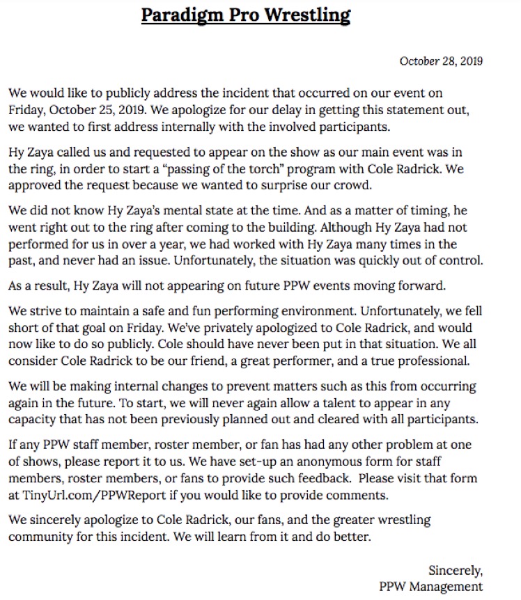Paradigm then put out a statement saying they would never work with Hy Zaya again and apologized for the incident.