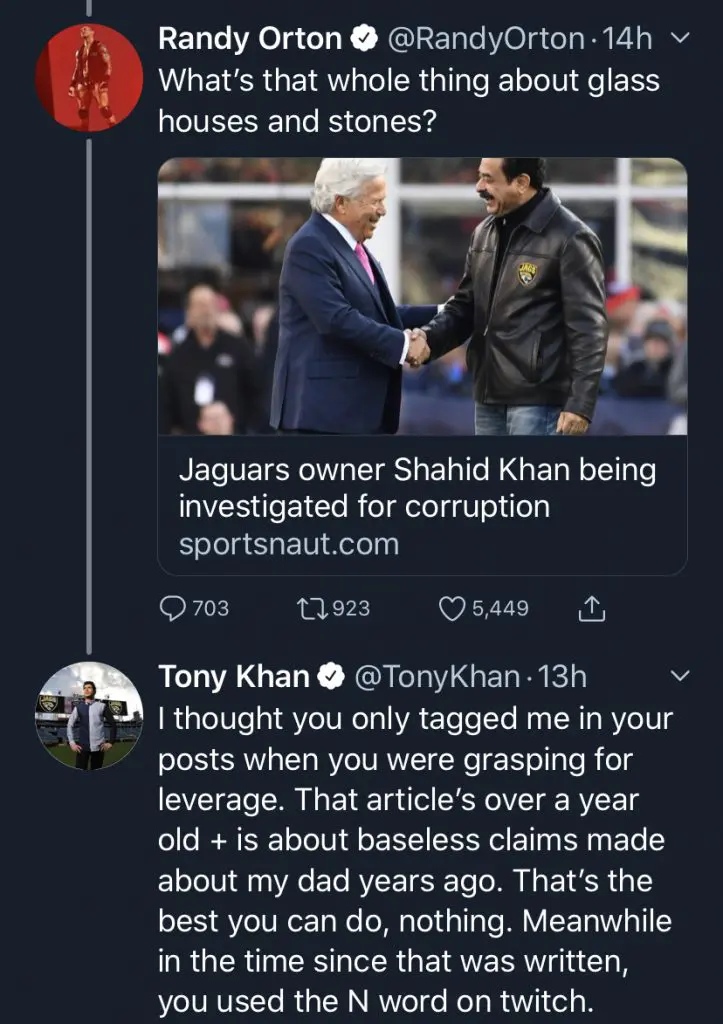 AEW Owner Tony Khan And WWE Superstar Randy Orton Trade Barbs On Twitter