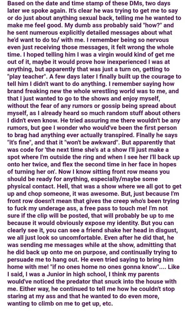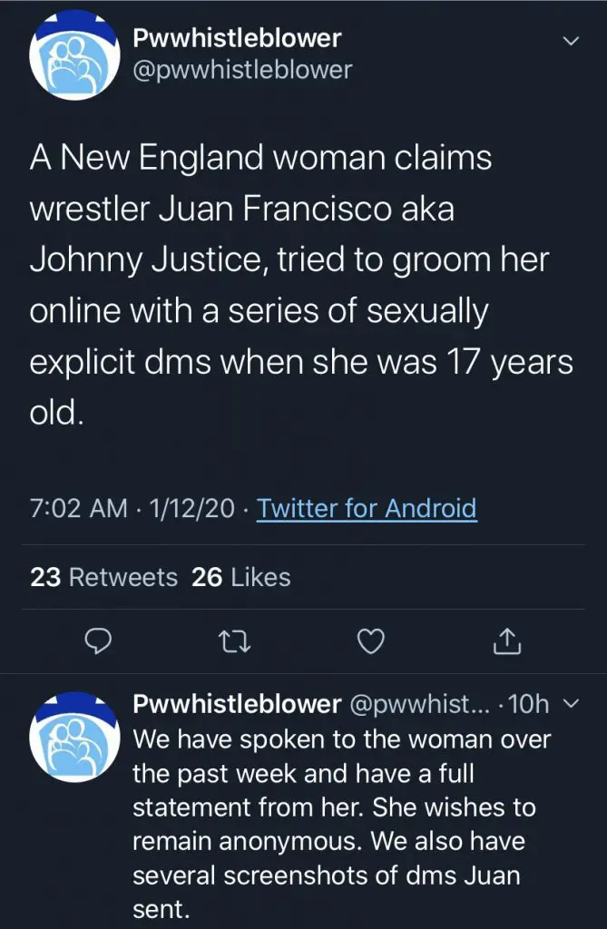 A new Twitter account popped up this year @Pwwhistleblower stating that Rory Gulak sent explicit DM’s to a fan about beastiality and possessing child pornography. Chikara, the promotion that Rory worked for had deleted him from their website and issued a statement regarding the matter.