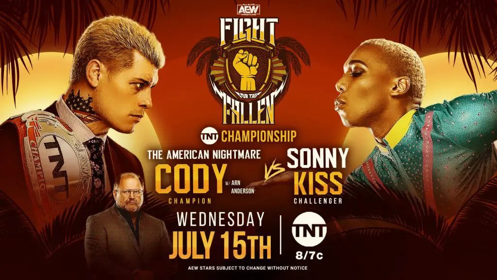 We will start with the match that should, but probably will not, open the show. Cody continues his “weekly” TNT challenge tonight as he puts the title on the line against Sonny Kiss. Kiss has rarely been presented on Wednesday night; he was on Fyter Fest night two looking to help his tag team partner Joey Janela against Lance Archer. In what will be Sonny Kiss’s first highlight contest on the mid week show, will he be able to wrest the title away from the grandson of a plumber (and ever-arrogant) Cody?