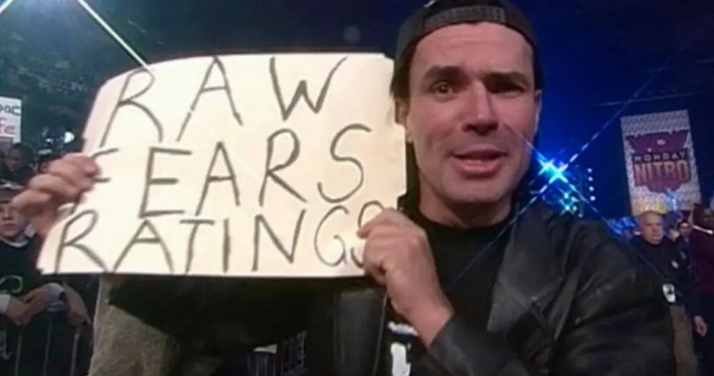 In the intervening months and years, this seemingly unstoppable streak became, quite understandably, a feather in the cap for Eric Bischoff and co. over at WCW – and a stick to beat the WWF with. Playful jabs were fired at McMahon about how the live WCW show was consistently outperforming the predominantly taped episodes of Raw. Fans started carrying signs at WCW shows proclaiming that “Vince fears ratings” or “Bischoff = ratings”. It was the first time that we, the fans, would weaponise the TV ratings that our favourite shows would hold over whomever the other guy was. In the playground that was wrestling, it didn’t matter if our dad was better than your dad: it mattered that our dad got better ratings.