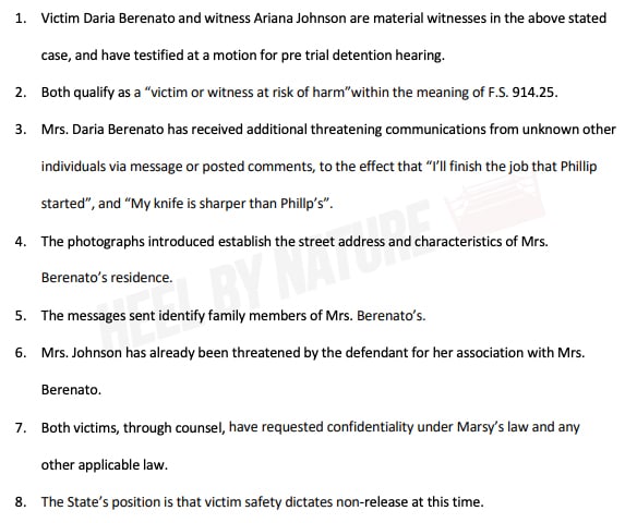 On August 24, a motion was filed to have the evidence sealed, including photographs which confirm her street address and the specific details of her residence, as well as messages received and sent which could be used to identify her family members.