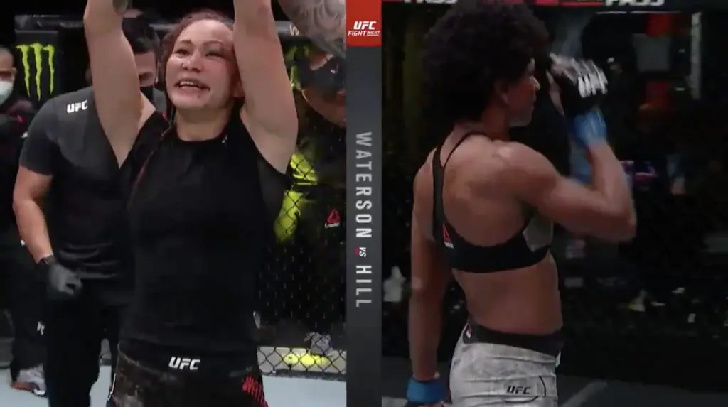 It was history in the making as Angela Hill became the first Black American female fighter to Main Event a UFC Card, Hill and Michelle Waterson didn’t disappoint. Landing a combined 259 significant strikes which saw Hill outland Waterson 131-128.