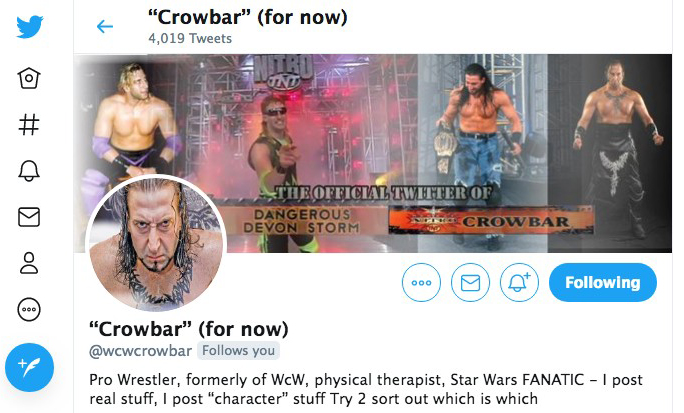 Crowbar, former WCW Hardcore, Tag Team and Cruiserweight champion, has teased a name change on social media recently.