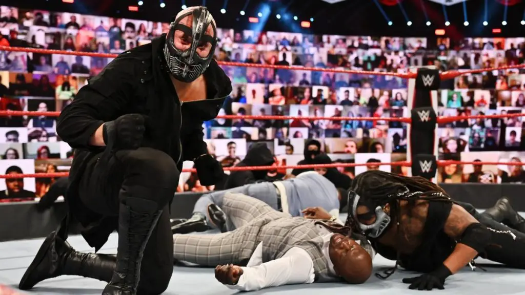 After defeating MVP in a one-on-one competition, Ali found himself backed into the corner of the ring by The Hurt Business. Just before it came to blows the lights flickered and there was Retribution surrounding the ring. Inside the ring, Ali seemed to have joined forces with The Hurt Business — for the time being.
