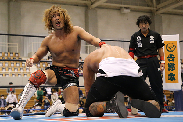 Hirooki Goto (6pts) defeated YOSHI-HASHI (2pts) by pinfall