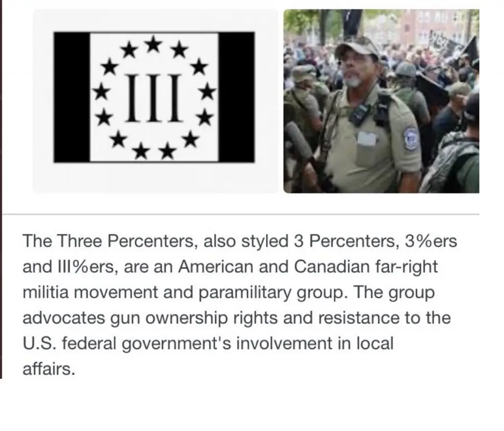 A Twitter user would post the following t-shirts which shows symbolism of far right militia group ‘The Three Percenters’,