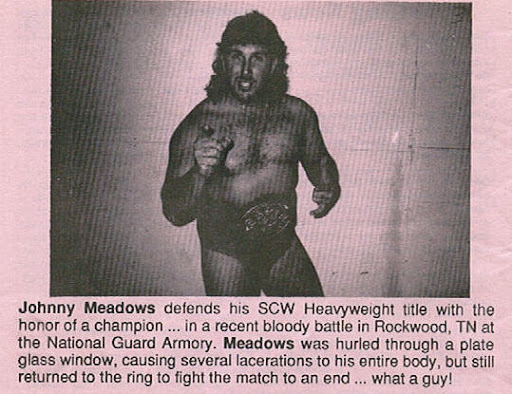 John Condrone not only wrestled as Johnny Meadows but was well known for several other wrestling characters including: The Paradise City Rockers (with Joey Cazana), The Dream Team (with Don Lucas), The Crusiers (with Terry Bronson), The Stingers (NWA/WCW henchmen for Rick Flair), The Conquistadors and Los Lobos as well as several others.