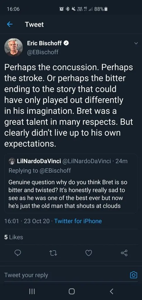 In a recent tweet, a fan would ask Eric Bischoff the following: