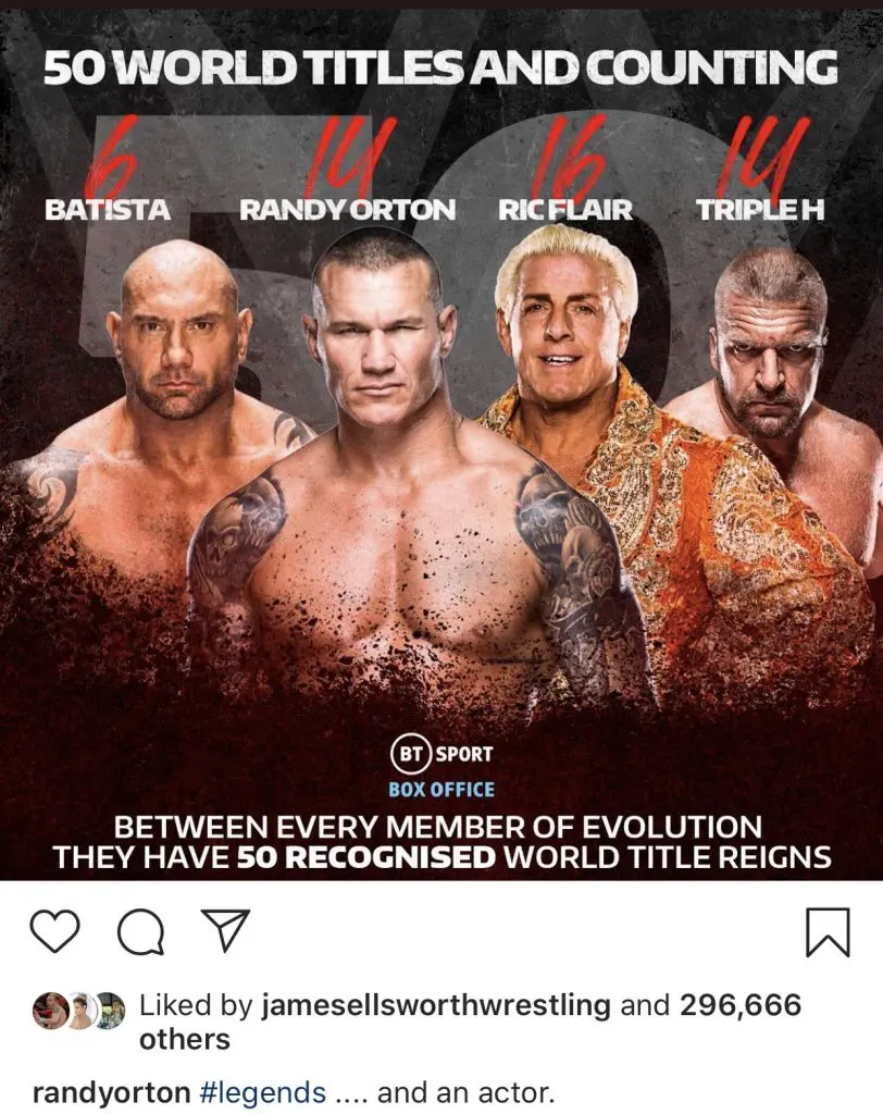 Randy Orton posted on social media about the accomplishment and used the opportunity to take a shot at former Evolution member Batista.