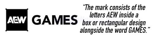 The first filing includes uses such as: “Video game discs; Downloadable game software; Downloadable video game programs.” The second states the following: “The mark consists of the letters AEW inside a box or rectangular design alongside the word GAMES.”