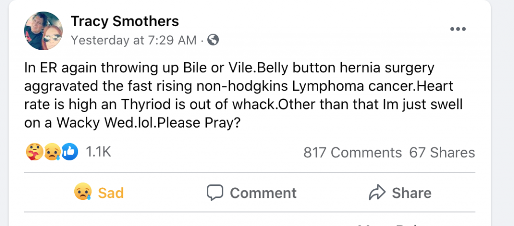 There has been a GoFundMe campaign launched in order to help with Tracy Smothers medical expenses, which you can visit by clicking the link HERE.