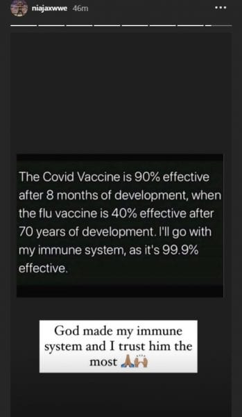 Nia Jax Posts Anti-Vaccine Message On Instagram