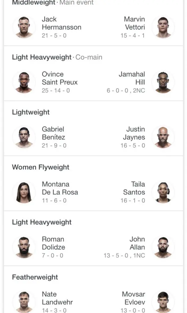 UFC Fight Night: Hermansson vs Vettori Card
