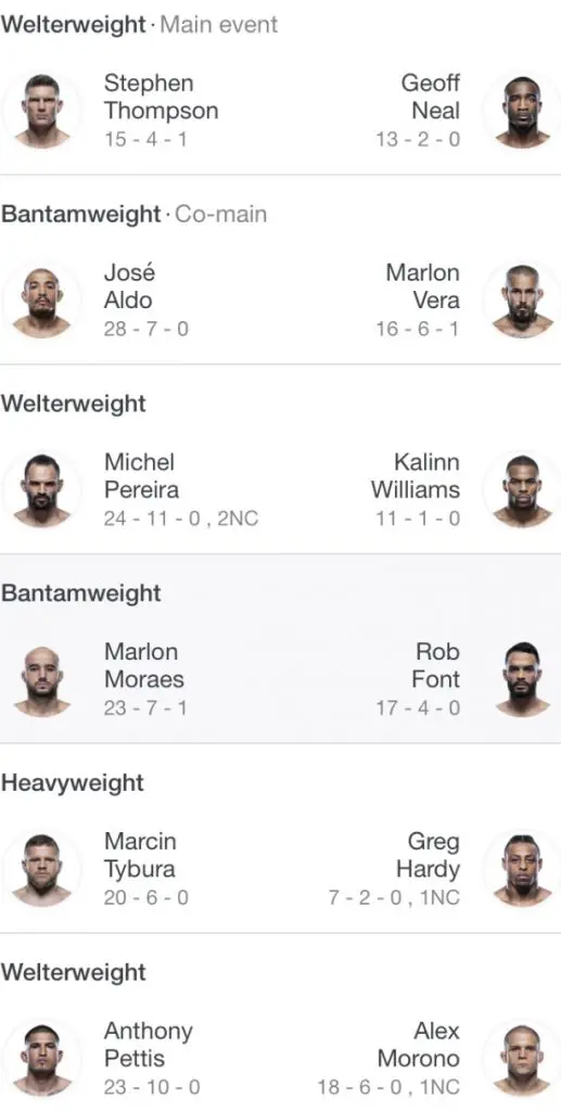 - Steven “Wonderboy” Thompson’s first fight in over a year, won his last fight.