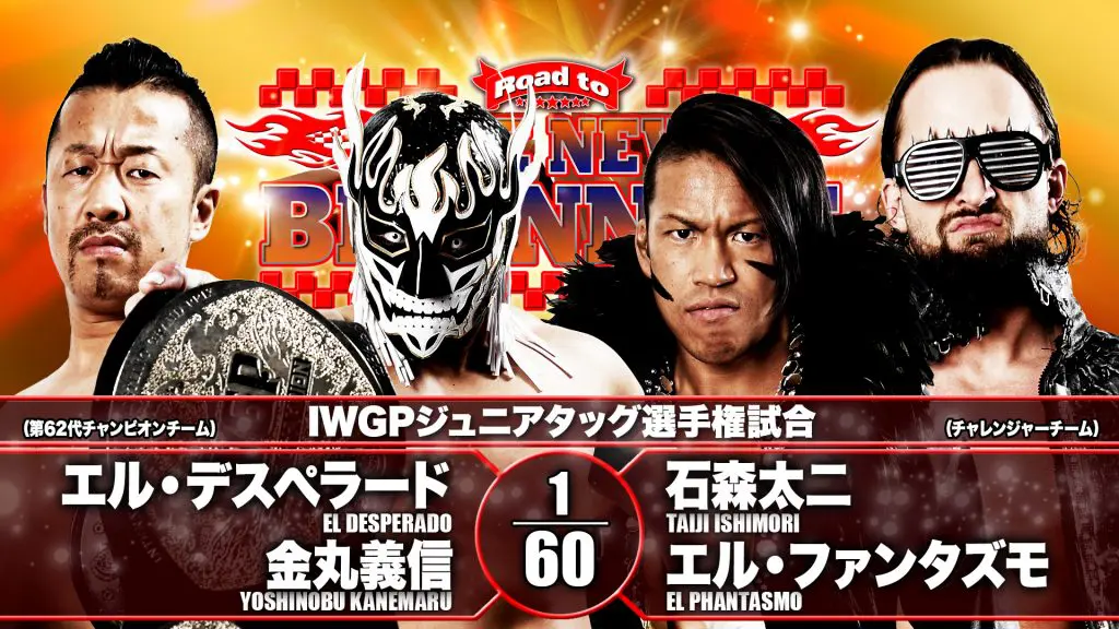The Road to New Beginning continues, this time stopping at the Ota City General Gymnasium in Tokyo, plenty of great matches on the card including the return of Hiroyoshi Tenzan as he teams with Satoshi Komjima against the Great O’Khan and Will Ospreay. Plus in the main the event the IWGP Super Jr tag team titles are on the line as challengers Taiji Ishimori and El Phantasmo take on the champions El Desperado and Yoshinobu Kanemaru.