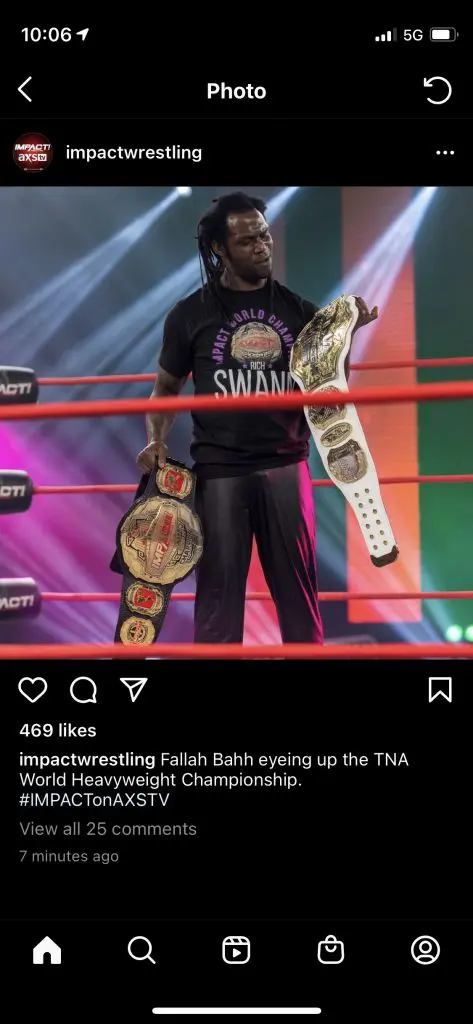 Impact Wrestling now has one of those moments, and it took place last night. In a now-deleted post on Instagram, Impact posted a photo of Rich Swann and mentioned Fallah Bahh instead.