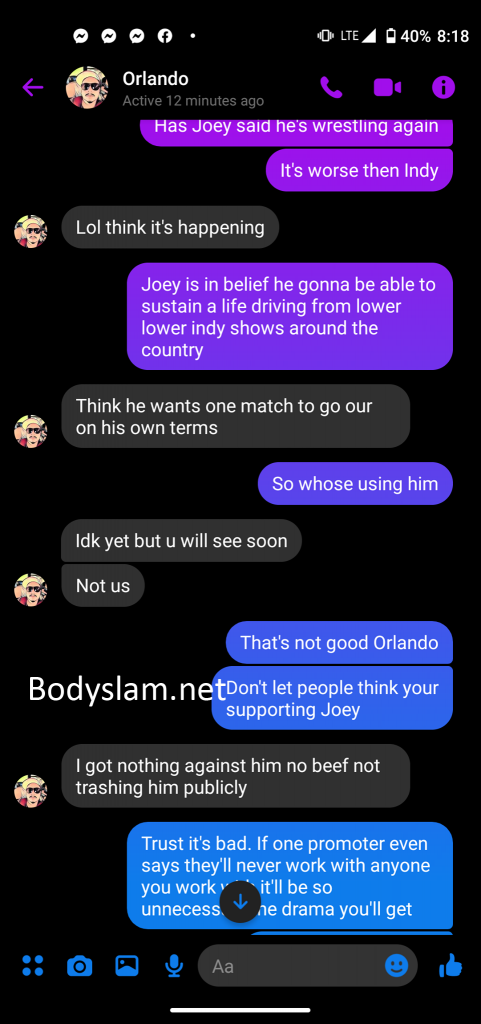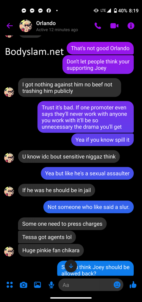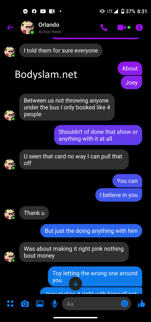 Eventually co-promoter of VxS Isaac Rodriguez issued a statement that said he was parting ways with Fernandez and was now the exclusive promoter of the brand. However, in screenshots exclusively shared with Bodyslam, Sanchez revealed that not only was Fernandez had deep involvement in booking the show, in addition to defending Joey Ryan to Sanchez.