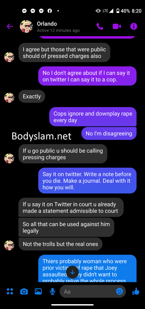 While these are only a sample, Bodyslam obtained almost 3 dozen screenshots of a conversation between Sanchez and Fernandez that implicates Fernandez’s involvement in helping book and promote the charity event and his willingness to forgive Ryan while shaming the victims for not going to the police. Though allegedly VxS has parted ways with him, Fernandez remains a promoter in the New York area.