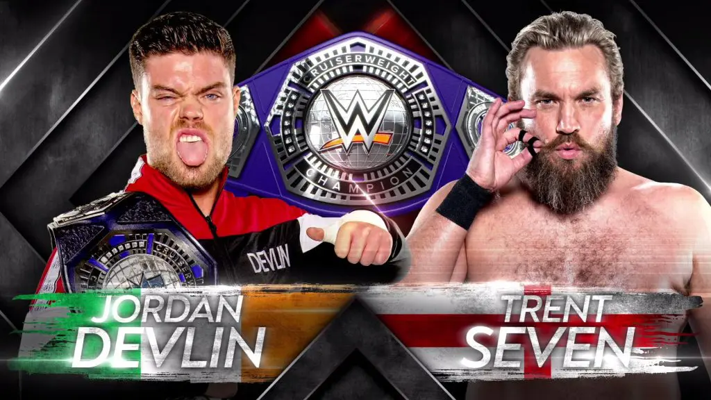 Jordan Devlin is set to defend his cruiserweight title against Trent Seven later tonight on NXT UK, the match up was announced and set yesterday on WWE’s the Bump, where Trent Seven did a live weigh in to prove he had dropped enough weight to compete for the title.