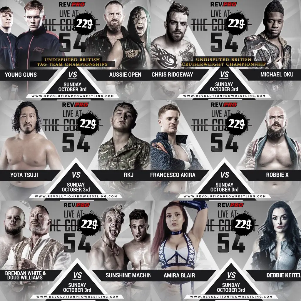 Rev Pro UK have announced the full card details for their Rev Pro Live At the 229: 54 which included the announcement of two Championship matches, including the first title defence for the New Tag Team Champions Aussie Open as well as a Crusierweight championship match,