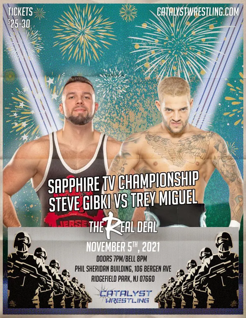Following his winning the Impact Wrestling X-Division Championship, world traveled Trey Miguel has stepped in at the 11th hour to take the Sapphire Television Championship back with him to Ohio and leave the Jersey Muscle Jock, Steve Gibki with his first singles loss in almost two years.