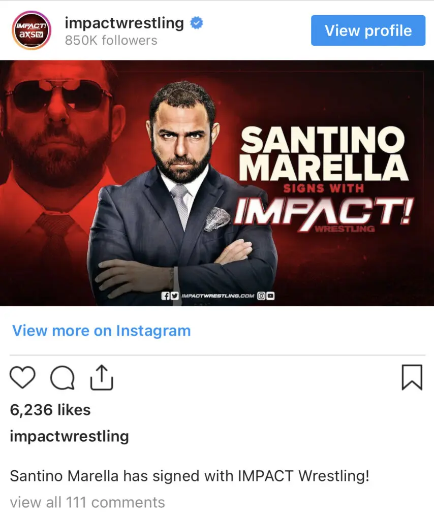 IMPACT Wrestling took so social media to announced that Santino Marella has signed with the promotion. Terms of the deal were not revealed.