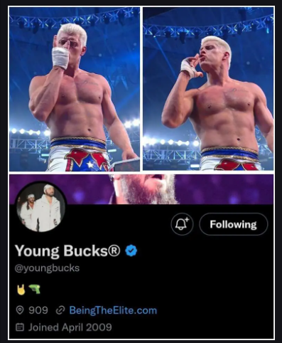 The Young Bucks took to Twitter to address Cody Rhodes’ shout-out from the Royal Rumble. Matt and Nick Jackson reacted to the special moment in their Twitter bio. They didn’t say anything outright, but those two emojis they picked certainly sent the message home.