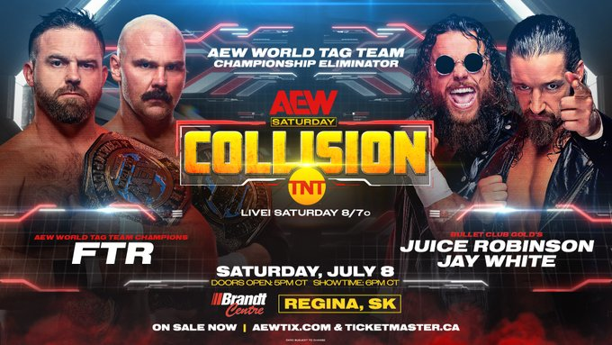 The Brandt Centre in Regina, Saskatchewan houses tonight’s episode of AEW Collision. I actually am surprised humanity let the name of Saskatchewan exist in lieu of something shorter to write. How do you Canadians exist like this? This is an affront to humanity. Bud do you know what isn’t an insult to all of Creation? Tonight’s Collision card! This show is short and filled mostly with semifinal matches for the Owen Hart Foundation Tournament and a Tag Team Title Eliminator Match! With that said, let’s get down to business!