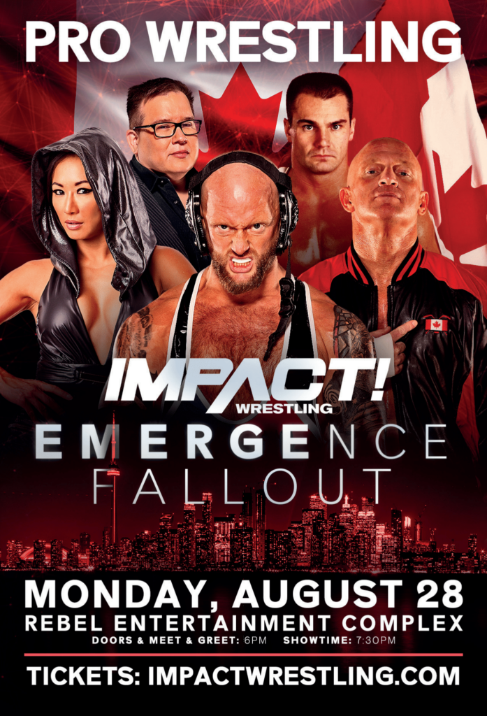 The Emergence Fallout TV tapings are being held at the Rebel Complex in Toronto, Canada. The special meet and greets are with some of IMPACT’s own Canadian talent/executives, who aren’t usually available for Meet and Greet opportunities. This includes: