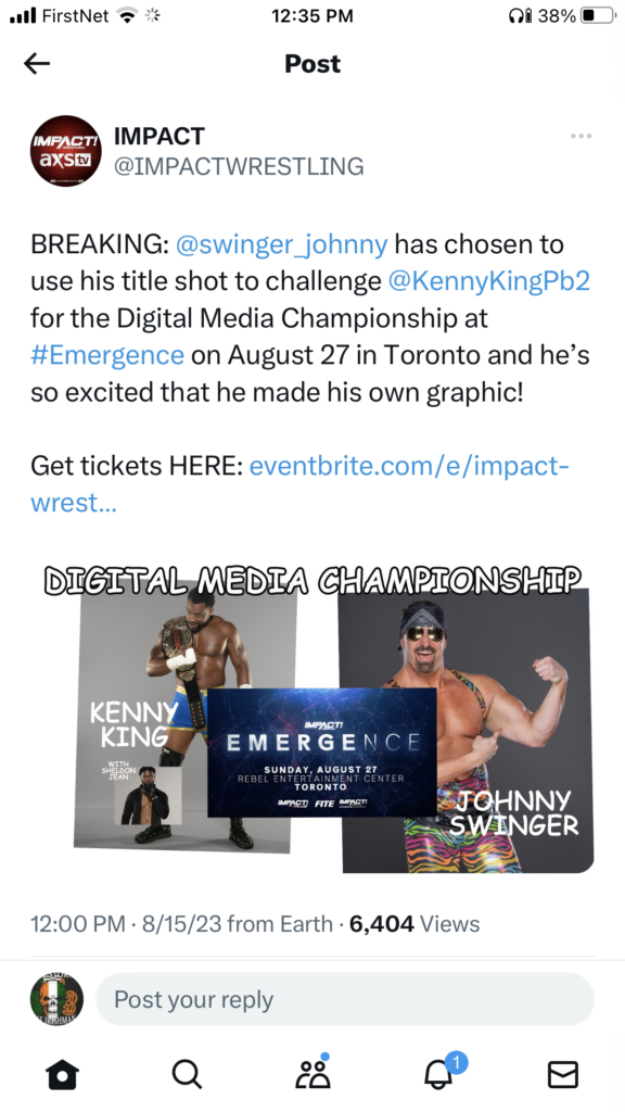 Swinger looks to gain his revenge by getting King in the ring and possibly becoming the new Digital Media champion.