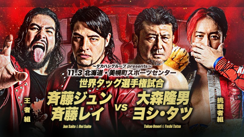 Jun & Rei Saito will be defending their AJPW World Tag Team Titles for the first time against the team of Takao Omori and Yoshi Tatsu on November 3rd during the AJPW Giant Series 2023 Hokkaido Edition tour.