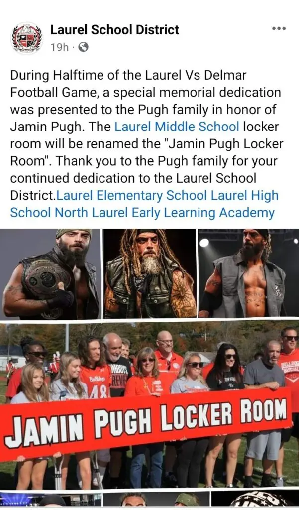 During a recent Football game between Laurel and Delmar, it was announced that Laurel Middle School’s locker room will now be known as the “Jamin Pugh Locker Room”.